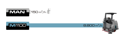 The robust M1100 R is built to perform in the toughest environments, reinforced with top quality materials to ensure reliability and robustness. With a cleaning path of 110 cm / 42 in and a top speed of 8 km/h (5mph), it delivers an impressive cleaning capacity of 8,875 m²/hour (95,500 ft²/hour). Designed to be versatile in both compact spaces and huge areas, the M1100 R delivers customized solutions for diverse requirements, guaranteeing maximum productivity and incredible results.