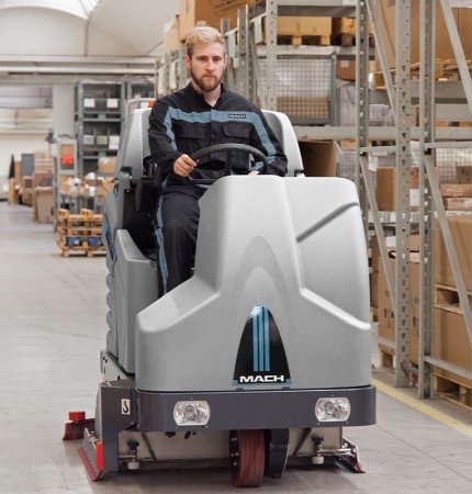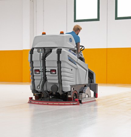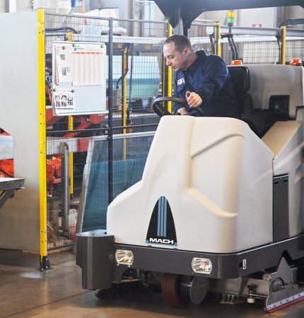 Reduce the need for multiple machines with a ride-on that sweeps and scrubs simultaneously.